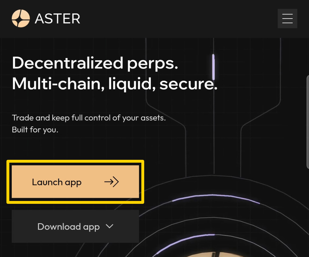 Step 1: Launch the Aster AppHead to Asterdex.com and click Launch App. |